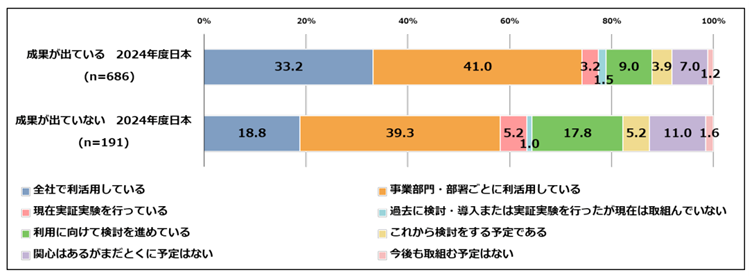 日本におけるデータの利活用の状況を DX の成果別に確認しました。