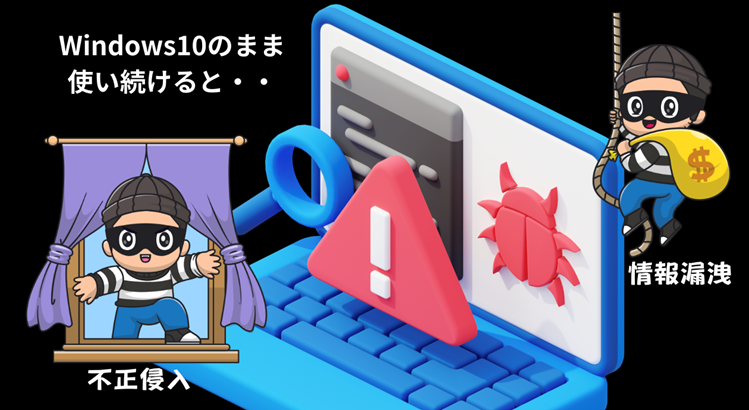 Windows10のサポートが終了しましたので、何の対応もせずに使い続けることは、事業継続の観点から不適切と言えます。該当するパソコンをお持ちの事業者の方は、本記事で紹介した対策を実施していただきたいと思います。